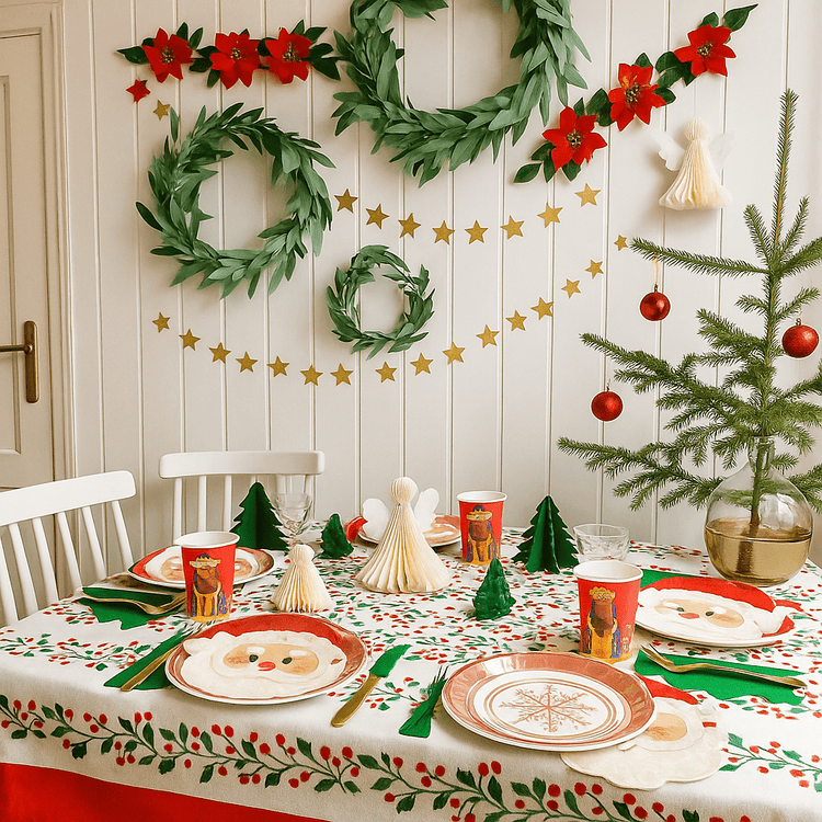 Prepara una mesa navideña llena de estilo con nuestra colección de platos y vasos desechables, manteles, velas y detalles con encanto que harán brillar cada comida. Ideal para cenas familiares, comidas con amigos o celebraciones especiales. 🎄 Productos prácticos, bonitos y con envío a toda España.