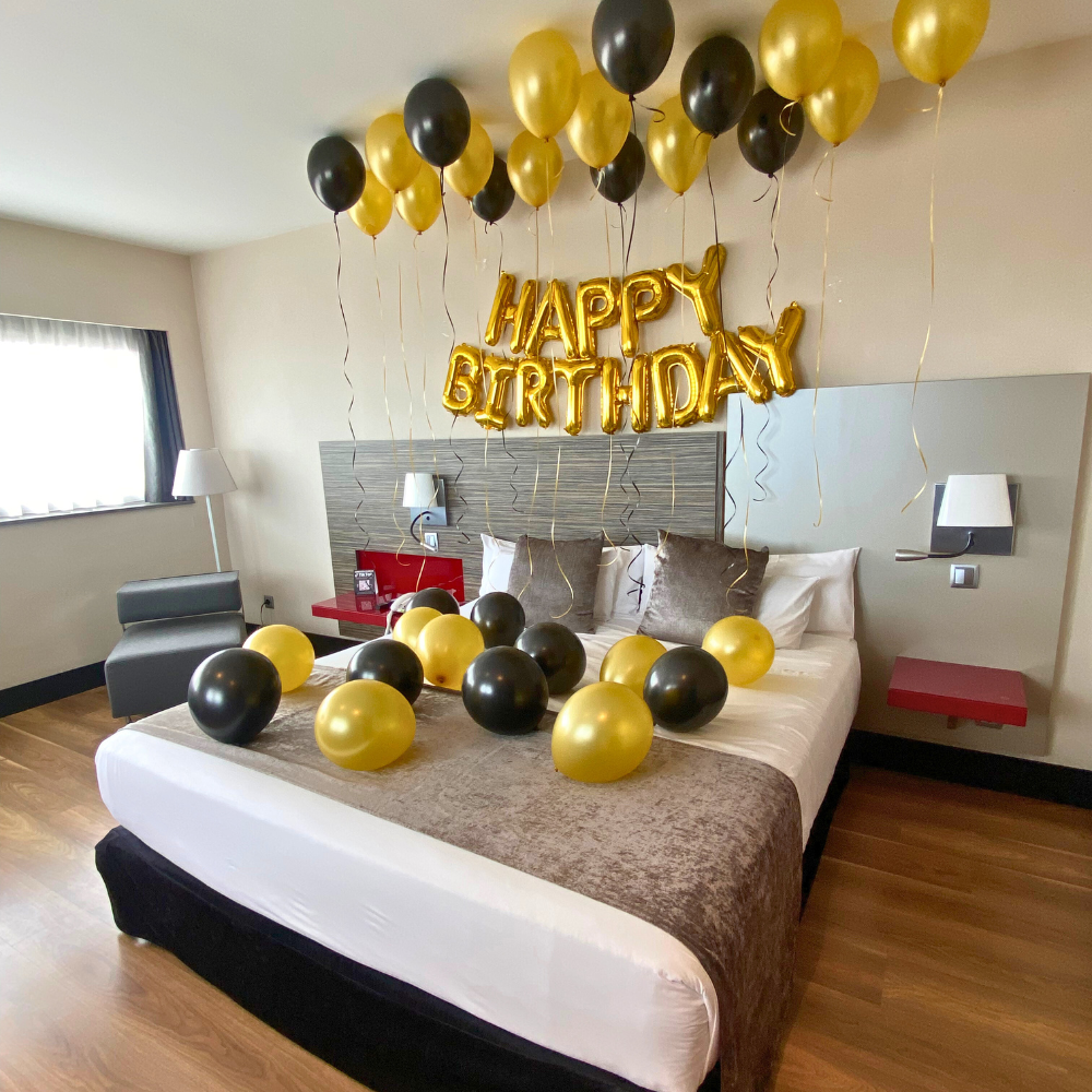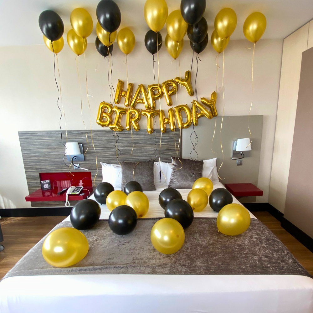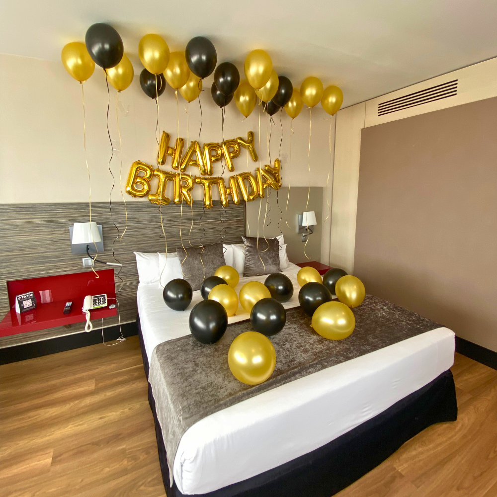 Una experiencia de decoración completa y personalizada con un estilo luxury para cumpleaños en una suite u hotel especial.