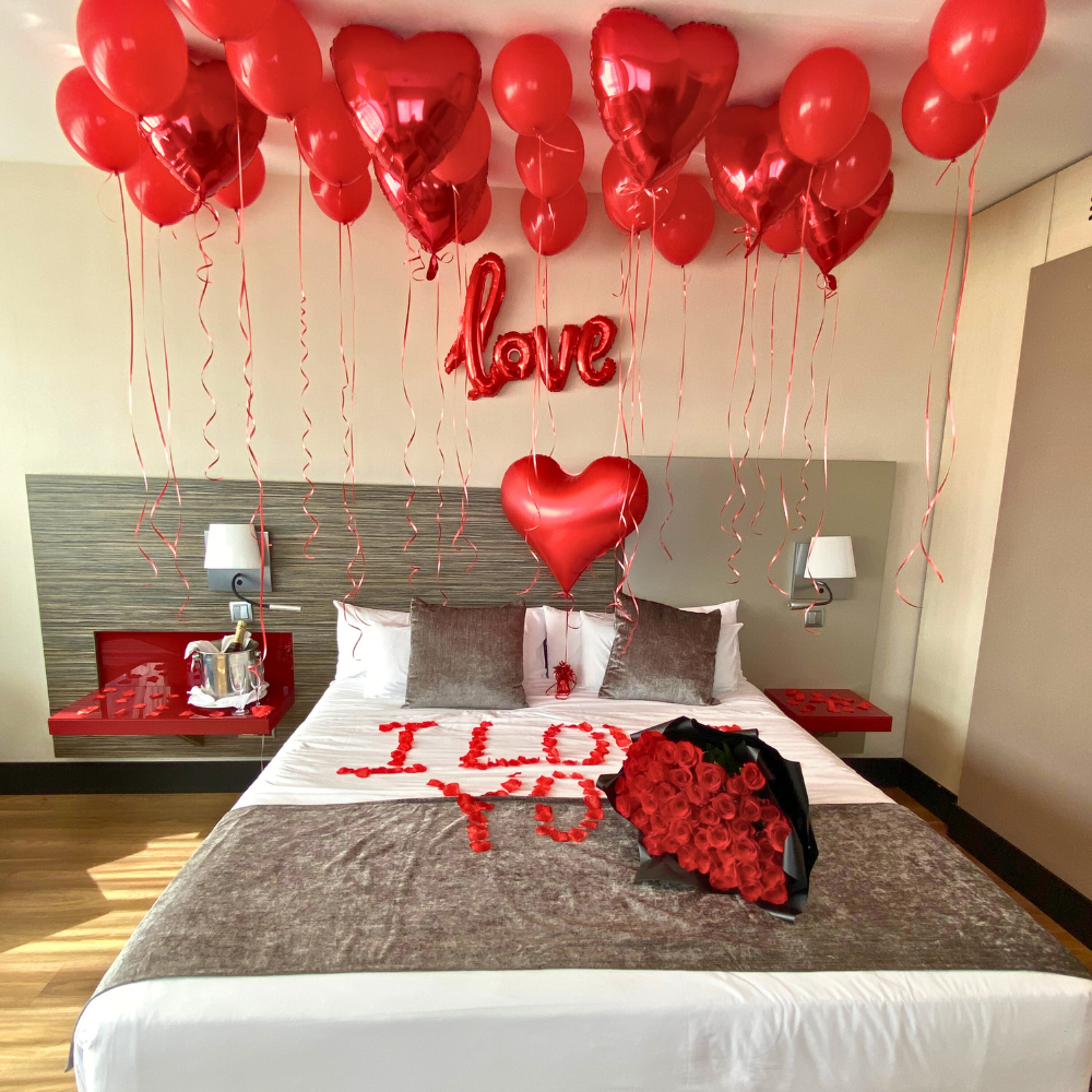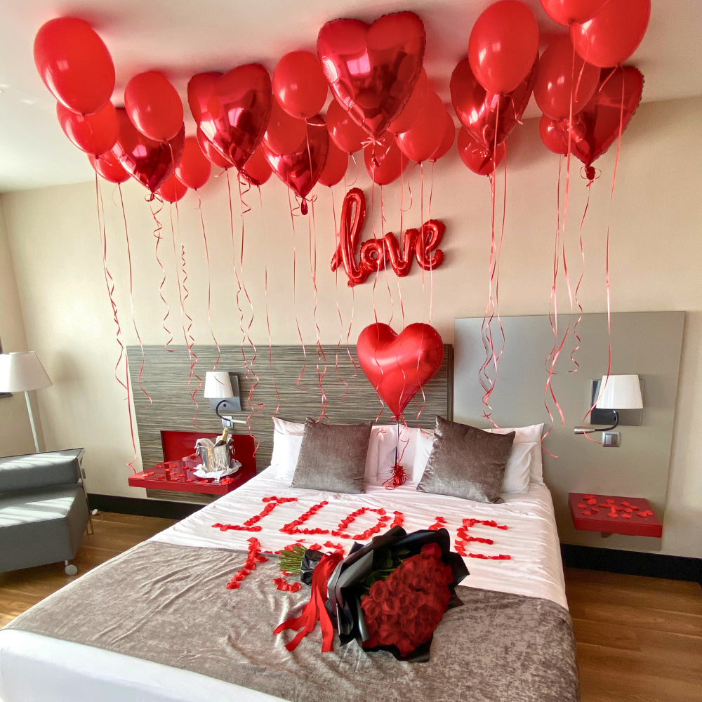 Una habitación transformada en un escenario de amor, ideal para aniversarios, escapadas románticas o pedidas de mano.